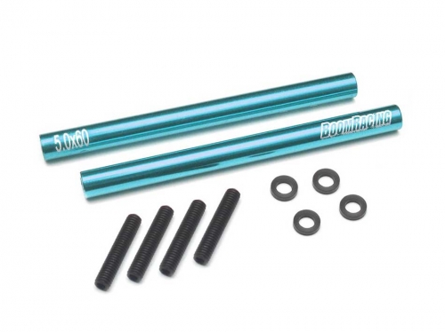 Threaded Aluminum Link Pipe Rod 5x60mm (2) w/ Set Screws & Delrin Spacers Blue