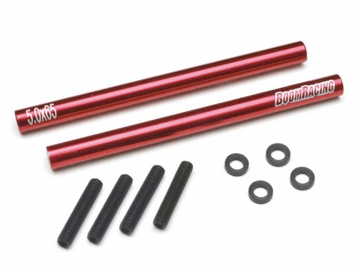 Threaded Aluminum Link Pipe Rod 5x65mm (2) w/ Set Screws & Delrin Spacers Red