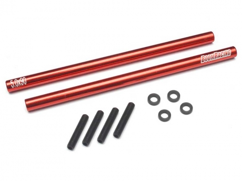 Threaded Aluminum Link Pipe Rod 5x90mm (2) w/ Set Screws & Delrin Spacers Red