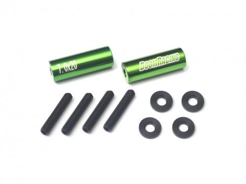 Threaded Aluminum Link Pipe Rod 7x20mm (2) w/ Set Screws & Derlin Spaces Green