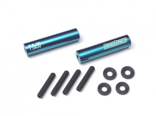 Threaded Aluminum Link Pipe Rod 7x30mm (2) w/ Set Screws & Derlin Spaces Blue