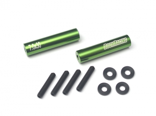 Threaded Aluminum Link Pipe Rod 7x30mm (2) w/ Set Screws & Derlin Spaces Green