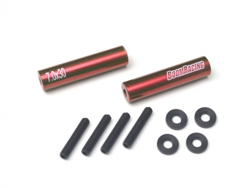 Threaded Aluminum Link Pipe Rod 7x30mm (2) w/ Set Screws & Derlin Spaces Red