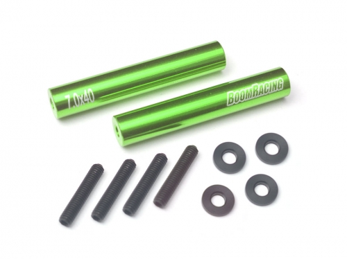 Threaded Aluminum Link Pipe Rod 7x40mm (2) w/ Set Screws & Derlin Spaces Green