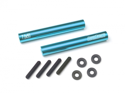 Threaded Aluminum Link Pipe Rod 7x50mm (2) w/ Set Screws & Derlin Spaces Blue