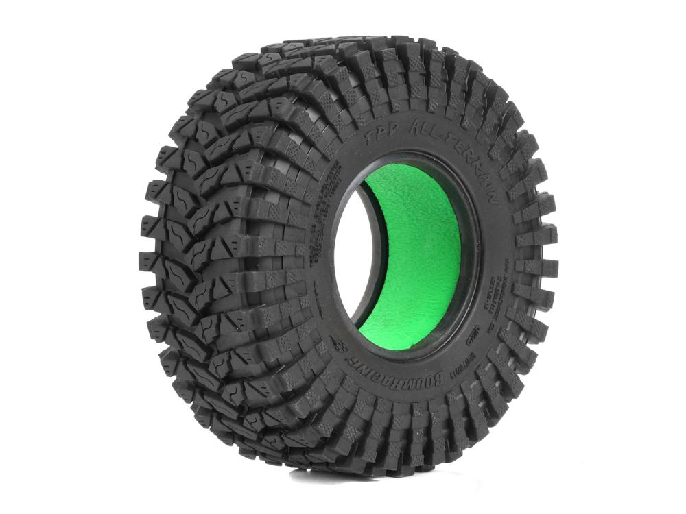 This is a pair of TPD™ 1.9" GEKKO™ Black (Super Soft) RC crawler tires with Rock Monster™ Green (super soft) foam inserts.