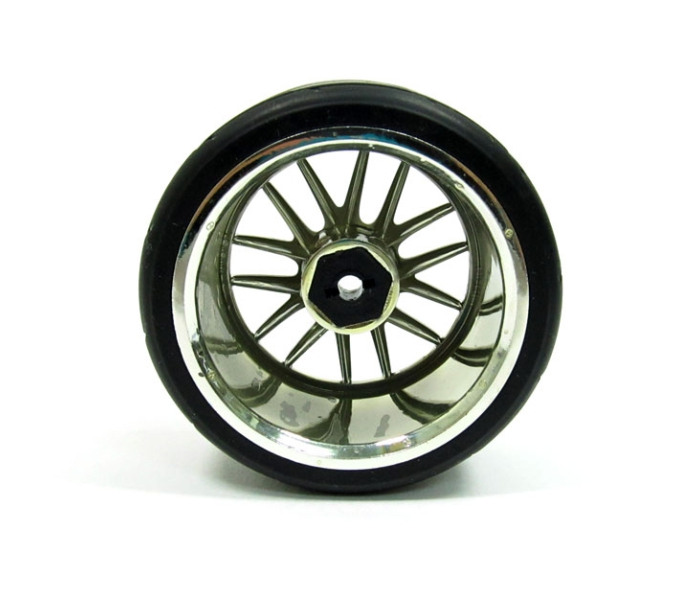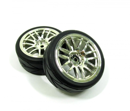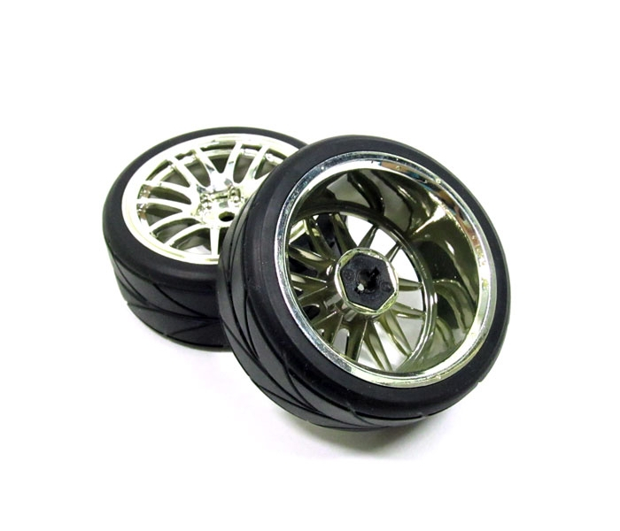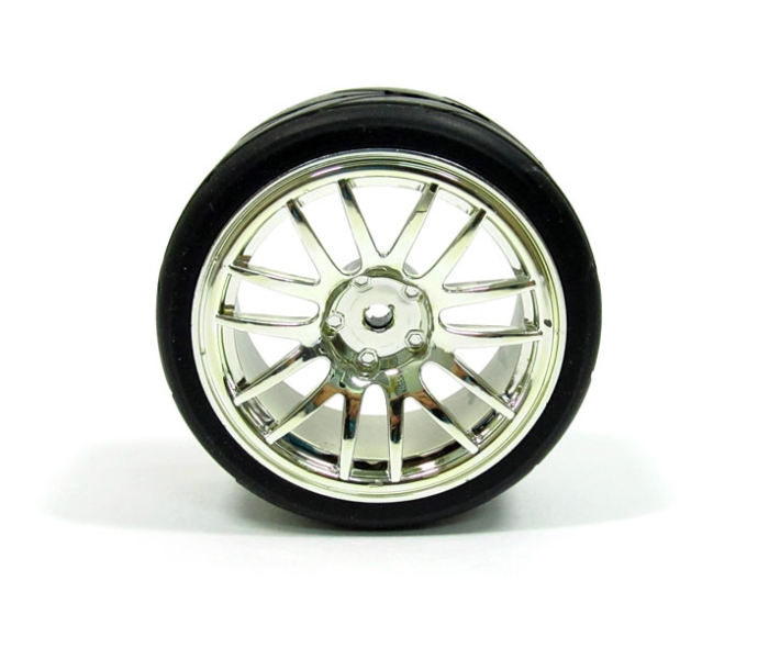 Wheel & Arrow Pattern Tire Set 14-Spoke For 1/10 Silver