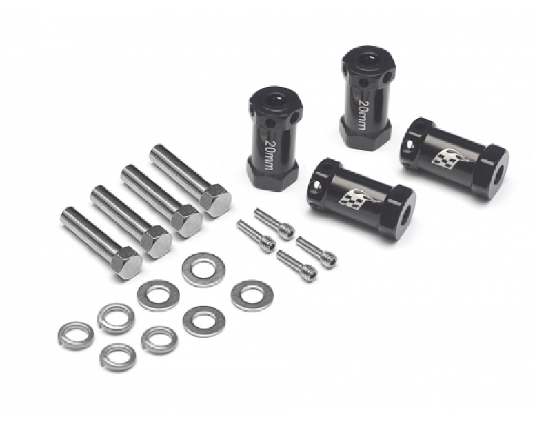 A different version of our popular wheel wideners now available for any Traxxas, Vaterra, Gmade, AE, Losi, Tamiya and ECX RC cars. Does not fit Axial cars, Vaterra Slickrock. Available in +14mm, +17mm and +20mm offsets. Increase performance by adding width to your RC car to increase stability. For Axial cars, look for part #BRW780900F-14MM and BRW780900F-20MM.