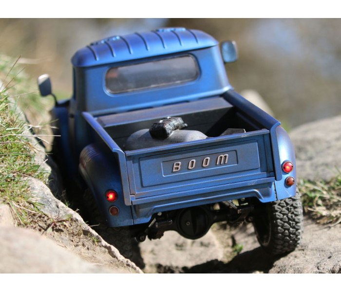 The ZIL Pickup is a fully molded ABS hard body with a 267mm wheelbase. Inspired by classic 1950s–60s pickups, it features a detailed interior, functional doors, hood and tailgate, radiator, scale engine space, and a separate full drop bed with a built-in storage compartment for your RC battery. It has 10 LED light buckets and lenses for the optional KUDU light kit (future release). Side steps are integrated with the chassis.